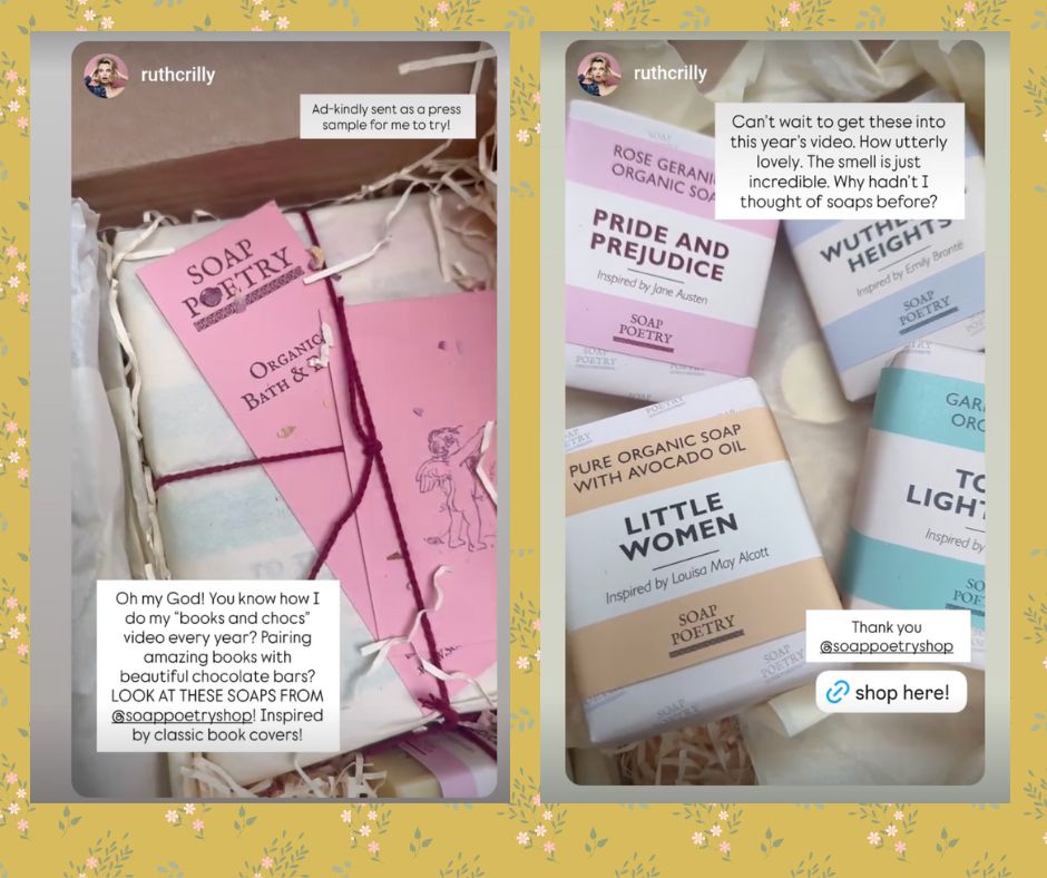 We are over the moon that Charlie loved our soaps! She always features beautiful products and champions quality, British-made brands, so to be included in such esteemed company was quite marvellous. You can watch her unboxing of our soaps on her YouTube vlog here.