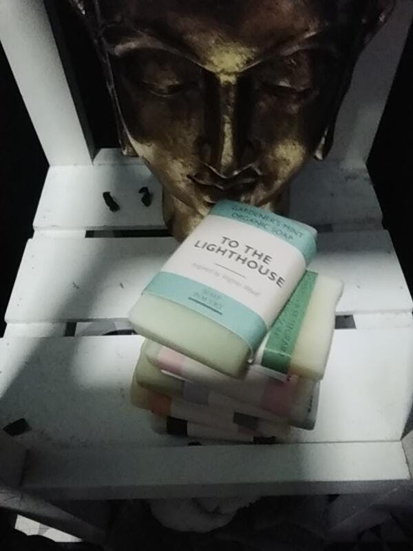 TO THE LIGHTHOUSE - INGREDIENTS (INCI): Sodium Cocoate*, Sodium Olivate*, Aqua, Sodium Apricot Kernelate*, Glycerin**, Sodium Mangoseedate*, Sodium Cocoabutterate*, Sodium Avocadoate*, Sodium Kokumate*, Sodium Castorate*, Mentha Piperita Oil*, Cedrus Atlantica Wood Oil*, Montmorillonite, Kaolin, Lavandula Angustifolia Oil*, Mentha Spicata Herb Oil*, Limonene†, Linalool†.