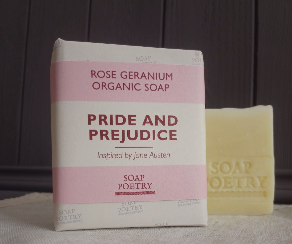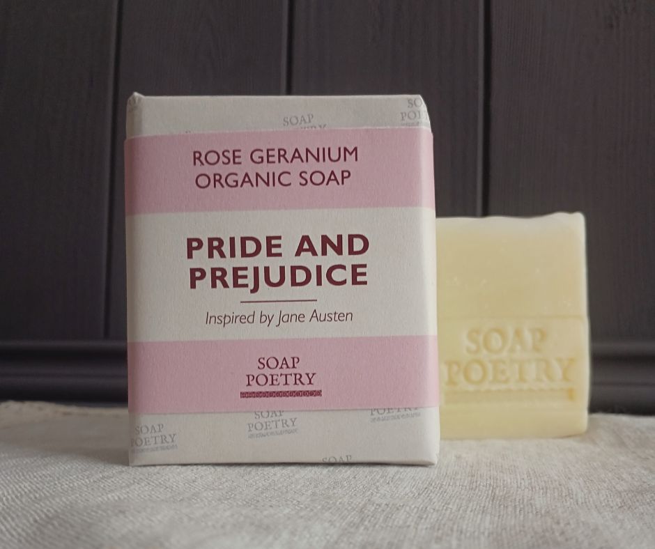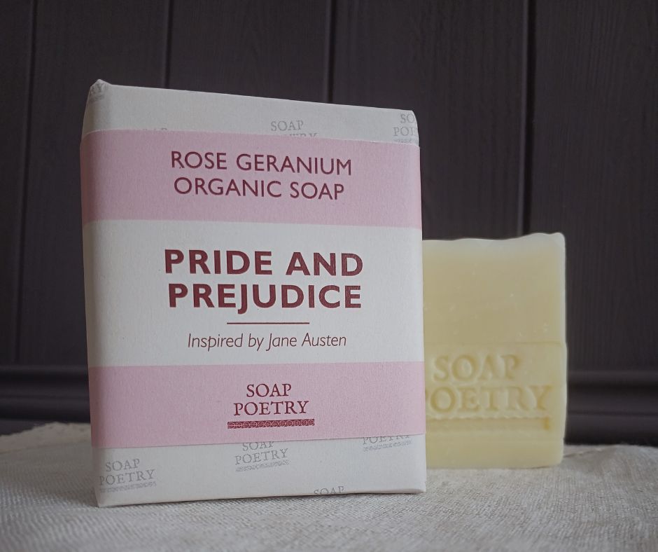 Inspired by Pride and Prejudice, this soap captures the elegance and romance of Pemberley’s gardens. Enriched with nourishing plant butters and a generous touch of rose geranium essential oil, it’s a nod to Regency sensibilities—where roses spoke of love and matters of the heart. With its soft, creamy lather, this soap is a fitting tribute to Austen’s beloved novel and the timeless beauty of roses in skincare. Handmade in small batches using the traditional cold-process method, each bar blends organic butters and oils to bring a touch of old-world charm to your daily ritual.